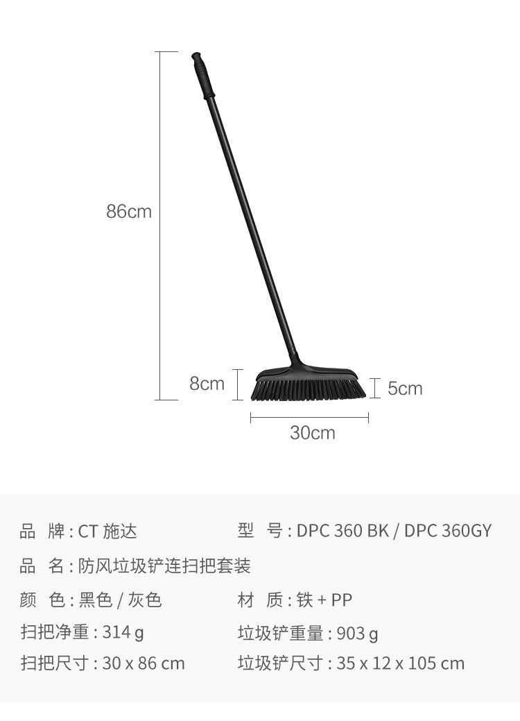 - 品名:CT 施達(dá) CT施達(dá) 防風(fēng)垃圾鏟連掃把全套 黑色 DPC 360BK