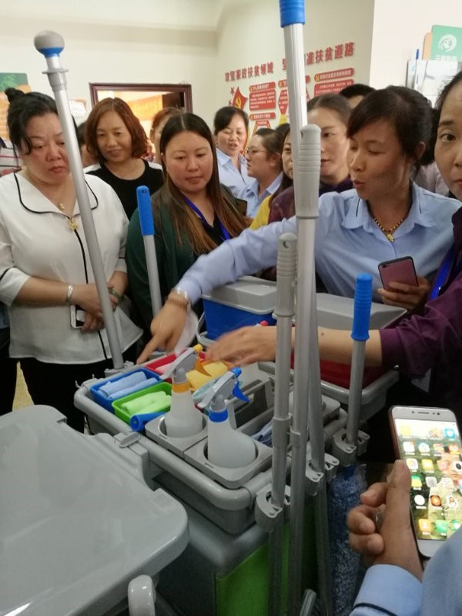 來(lái)賓們體驗(yàn)日常保潔工具(除塵、濕擦、拖地、垃圾收集等專項(xiàng))的搭配及使用。