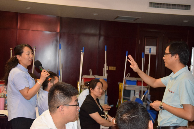 與來賓們交流分享日常保潔中遇到的問題及解決方法。