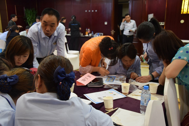 結(jié)合趣味小游戲,讓來賓們體會日常保潔的操作流程及分色管理的應(yīng)用,讓來賓們更好地運用到管理中去,再加上擦玻璃的實操環(huán)節(jié),加深對聽講內(nèi)容的理解。