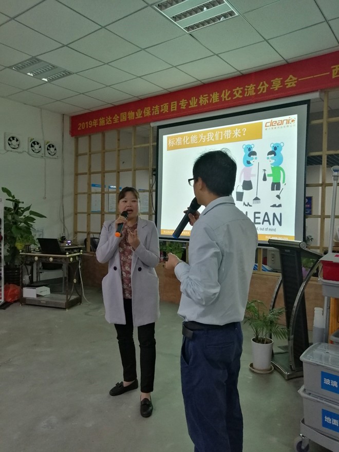 2019年5月16日,本次交流會來到了西安站。在西安富嘉清潔設備有限公司的協助下,誠邀各物業管理人員齊聚一堂,圍繞預防管理——感控管理——模塊化管理——營運體系(培訓、考核體系),共同探討保潔行業的現狀及未來發展方向。