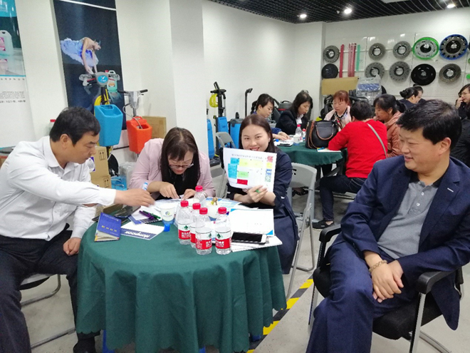 由施達總部分銷業務經理給來賓們講解演示產品在日常保潔的實際應用和管理,讓來賓們親自體驗使用產品,能更加深刻理解到日常保潔工具的搭配及使用。