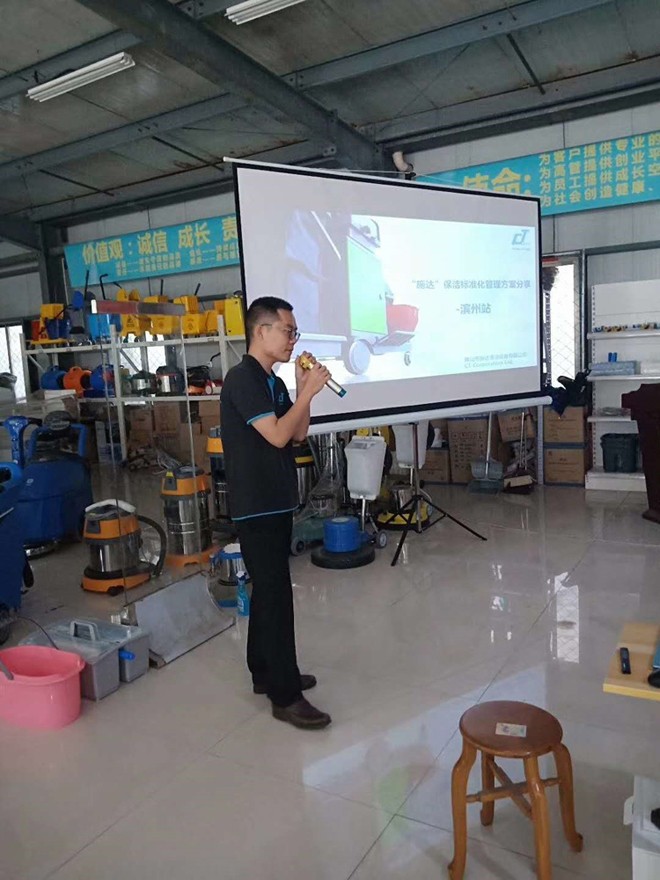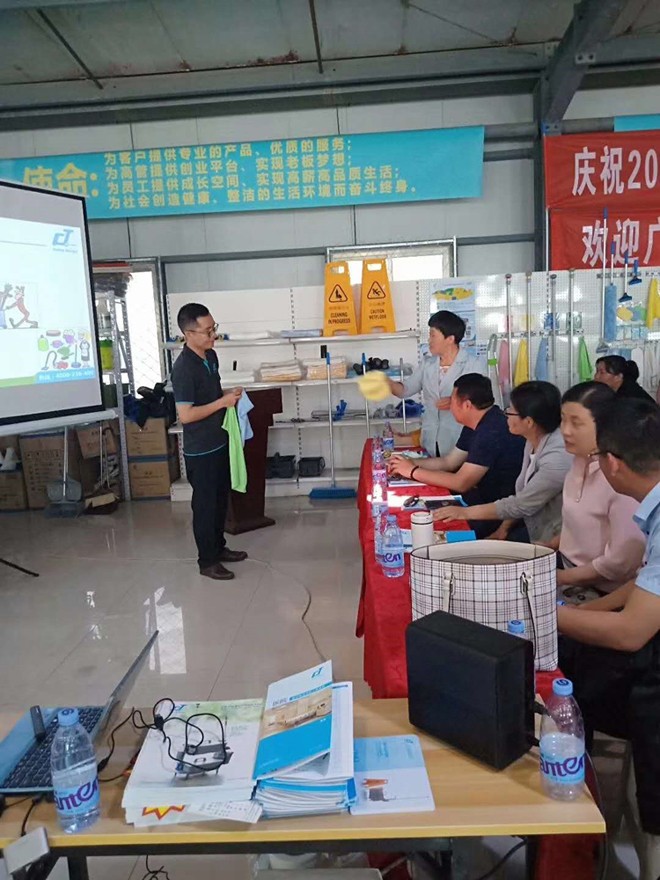 由施達總部分銷業務營運助理給來賓們講解演示產品在日常保潔的實際應用和管理。
