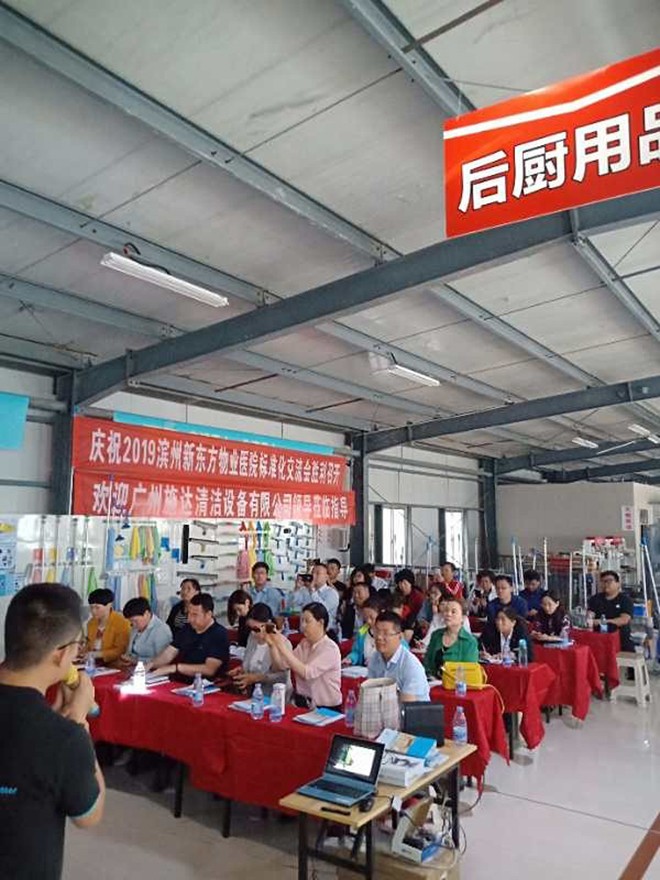 2019年5月14日,本次交流會來到了棉紡織之都——山東濱州。在濱州市東方工貿有限公司的協助下,誠邀各物業、醫院管理人員共聚一堂,圍繞預防管理——感控管理——模塊化管理——營運體系(培訓、考核體系),共同探討保潔行業的現狀及未來發展方向。