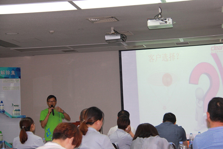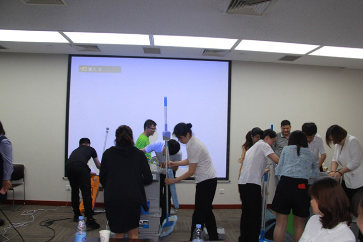 施達總部分銷業務經理給來賓們講解演示產品在日常保潔的實際應用和管理,讓來賓們了解到日常保潔工具的搭配及使用。
