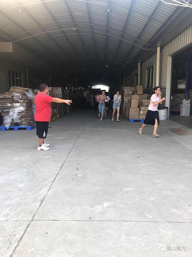 ▲當班組長組織員工疏散到緊急集合點并進行清點人數。