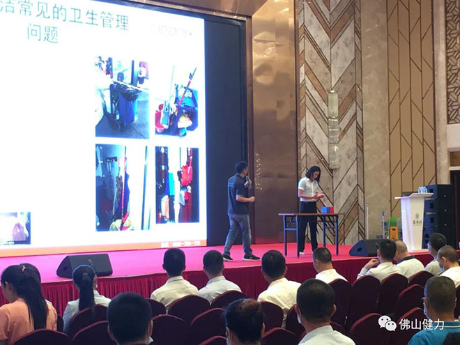 培訓會上,周經理通過項目考察、區域劃分、產品選擇、工作流程、工作計劃、崗位配置、管理模塊等七大內容進行深入淺出分析,把物業可視化的衛生管理系統的實施方法娓娓道來,加上有趣的互動參與環節,把培訓會推向一幕幕高潮。
