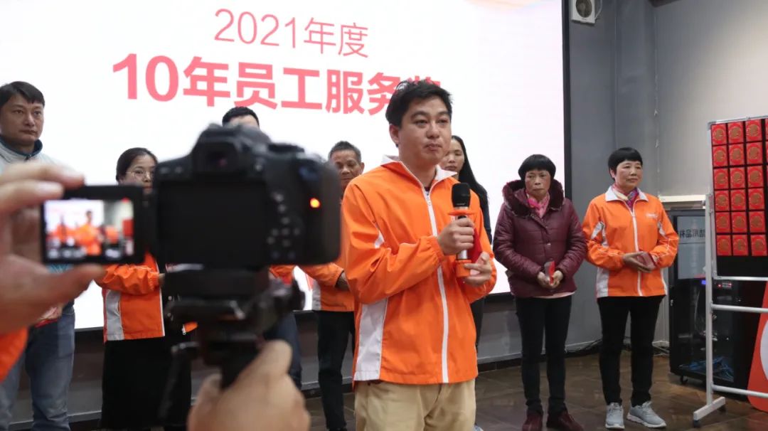 10年員工服務獎,是頒給為公司服務10年的老員工。員工代表的發言充滿了溫馨、歡樂與感動。