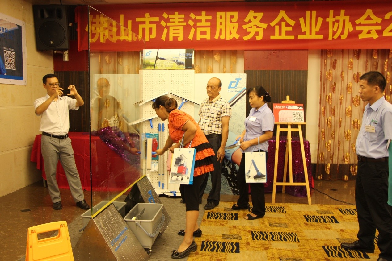 由佛山市清潔服務企業協會聯合佛山施達冠名舉辦的‘施達杯’玻璃清潔技能大賽于2015.8.28舉行,佛山地區十多家資深清潔企業派遣行業精英參與競技,比賽現場競爭激烈,其中以CT施達最新專利刮窗神器: 2合1雙面玻璃刮為主要的比賽工具,經一番精彩角逐比拼, 最終產生前三優秀選手。
