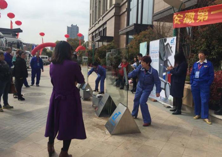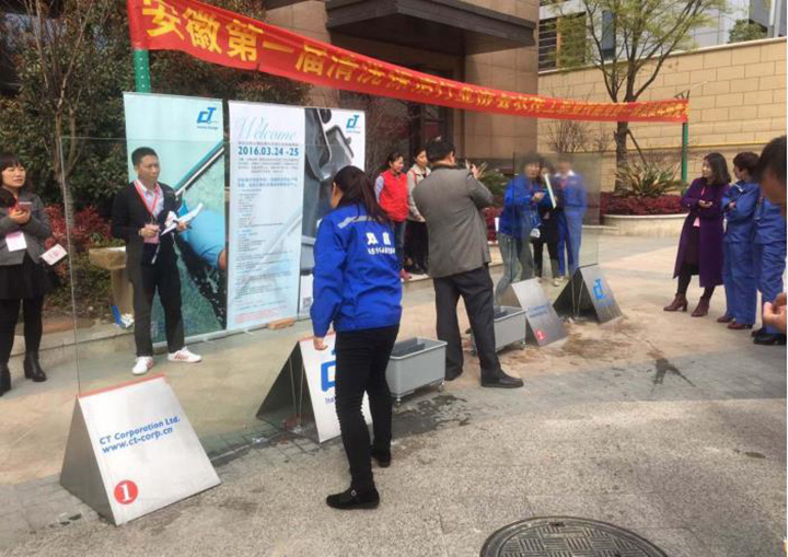 由安徽省總工會、安徽省人力資源和社會保障廳主辦,佛山市施達清潔設備有限公司傾情贊助的安徽省第一屆清洗保潔行業農民工職業技能競賽于2016年3月在安徽合肥中鐵凱萊酒店開幕。期間舉行的玻璃清潔大賽所用工具CT施達二合一玻璃刮,因其操作快捷簡便,大幅提升清潔效率而得到廣大參賽者的肯定和贊賞,被譽為新一代玻璃清潔神器。