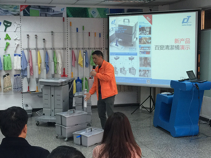 施達產品工程師朱傳鵬先生介紹施達新產品百變清潔桶的配置應用方案