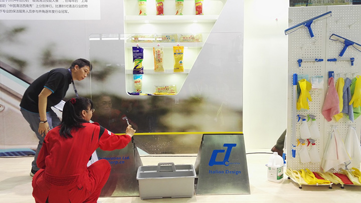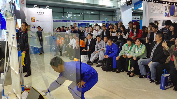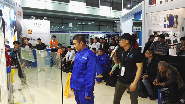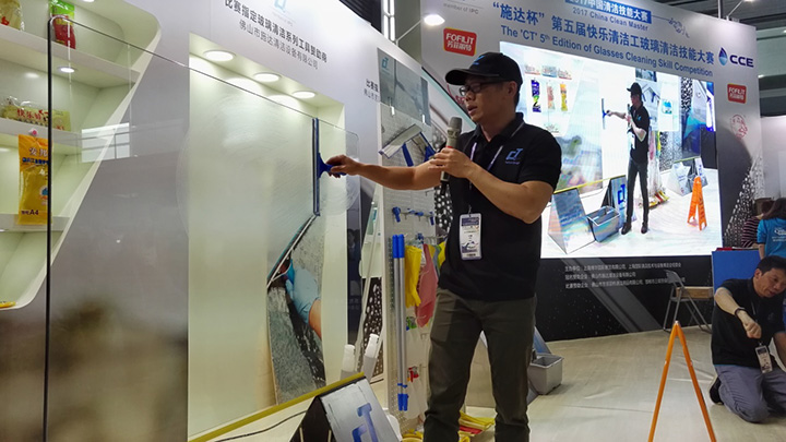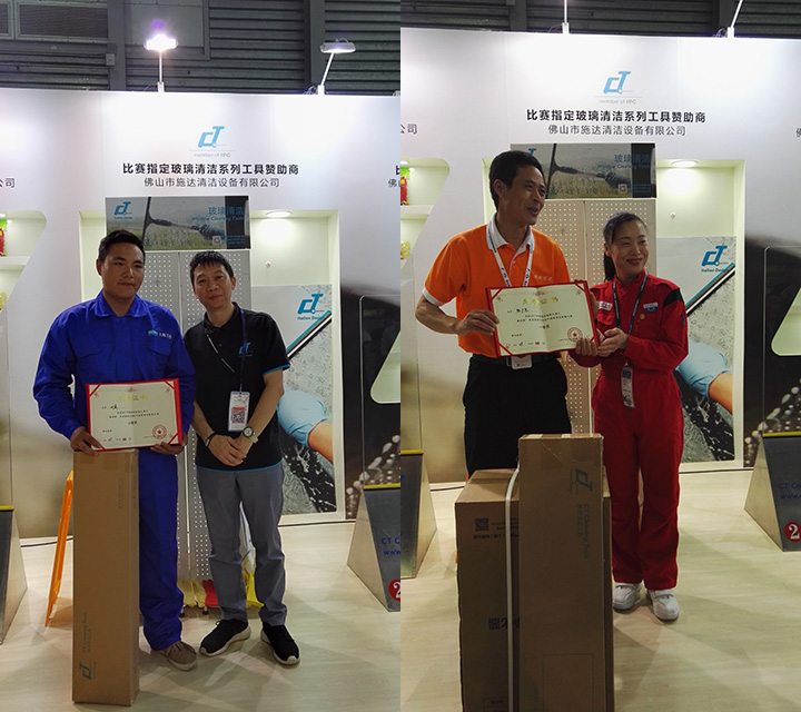 由佛山市施達清潔設備有限公司冠名贊助之2017年“施達杯” 第五屆快樂清潔工玻璃清潔技能大賽 (上海站)于今年4月27號在第十八屆中國清潔博覽會中圓滿結束。比賽現場更是幾度沸騰、精彩連連。 參賽選手使用由施達公司提供的施達2合1玻璃刮、高密納米魔術棉、玻璃布進行比賽,經過激烈的角逐,最終產生二強得主。
