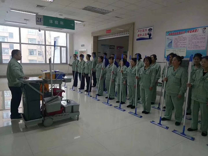 整齊的隊列,嚴謹的培訓,我們的清潔隊伍也能讓人感受出軍隊的紀律,有木有?為我們的保潔人員點個贊。